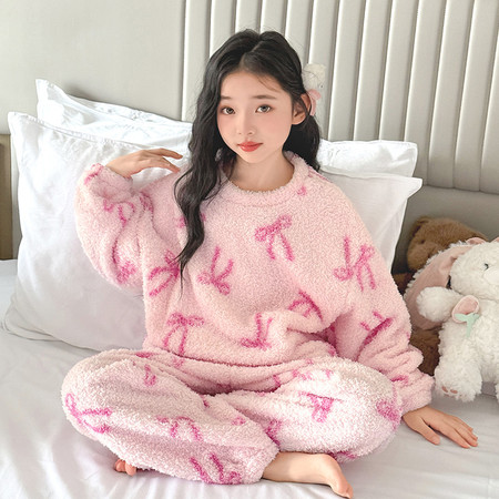 1*2收藏“1156-蝴蝶结仿半边绒女童睡衣家居服冬”